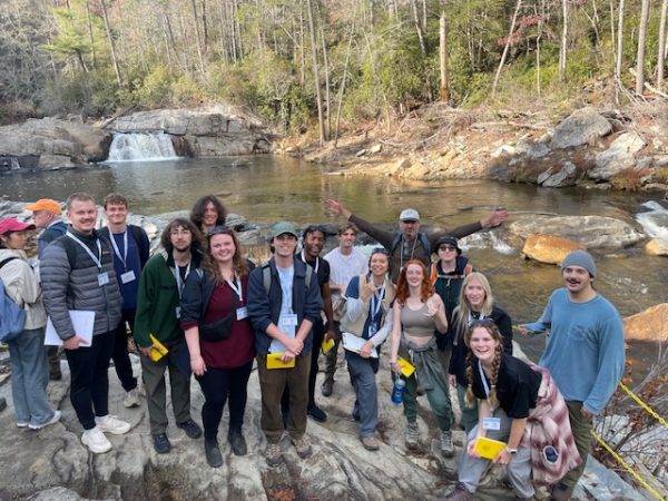 The Saturday stops were led by UNC Charlotte PhD Alum Dr. Brad Johnson from Davidson College. He discussed the role of stream capture along the eastern side of the Blue Ridge Escarpment along the Linville River and Walker Creek. We also discussed the effects of Hurricane Helene on the geomorphology of the same areas. Students explored Linville Falls and Wilson Creek landslides during the day, before heading back to Lake James for a campfire and pasta dinner!